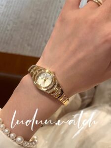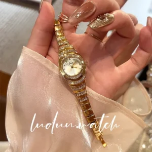 Montre Diana dorée avec pierres cristallines